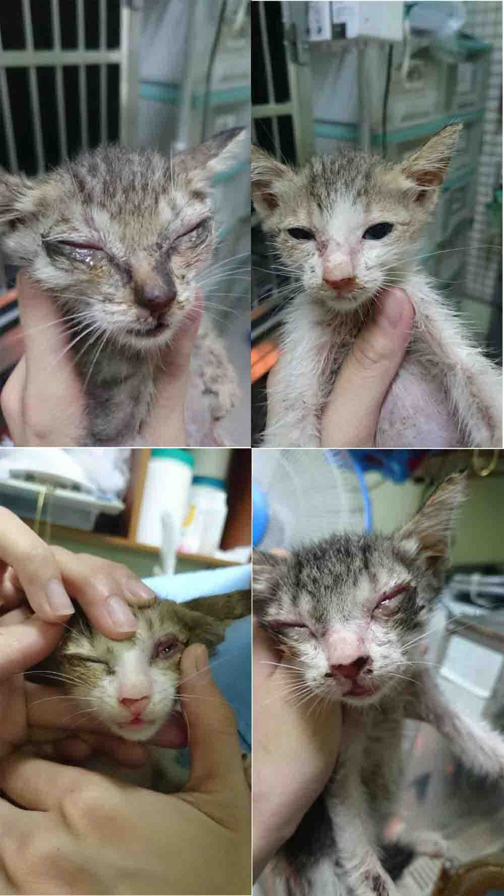 其他隻小貓眼睛狀況有比較好,一樣要點藥照顧至痊癒.
