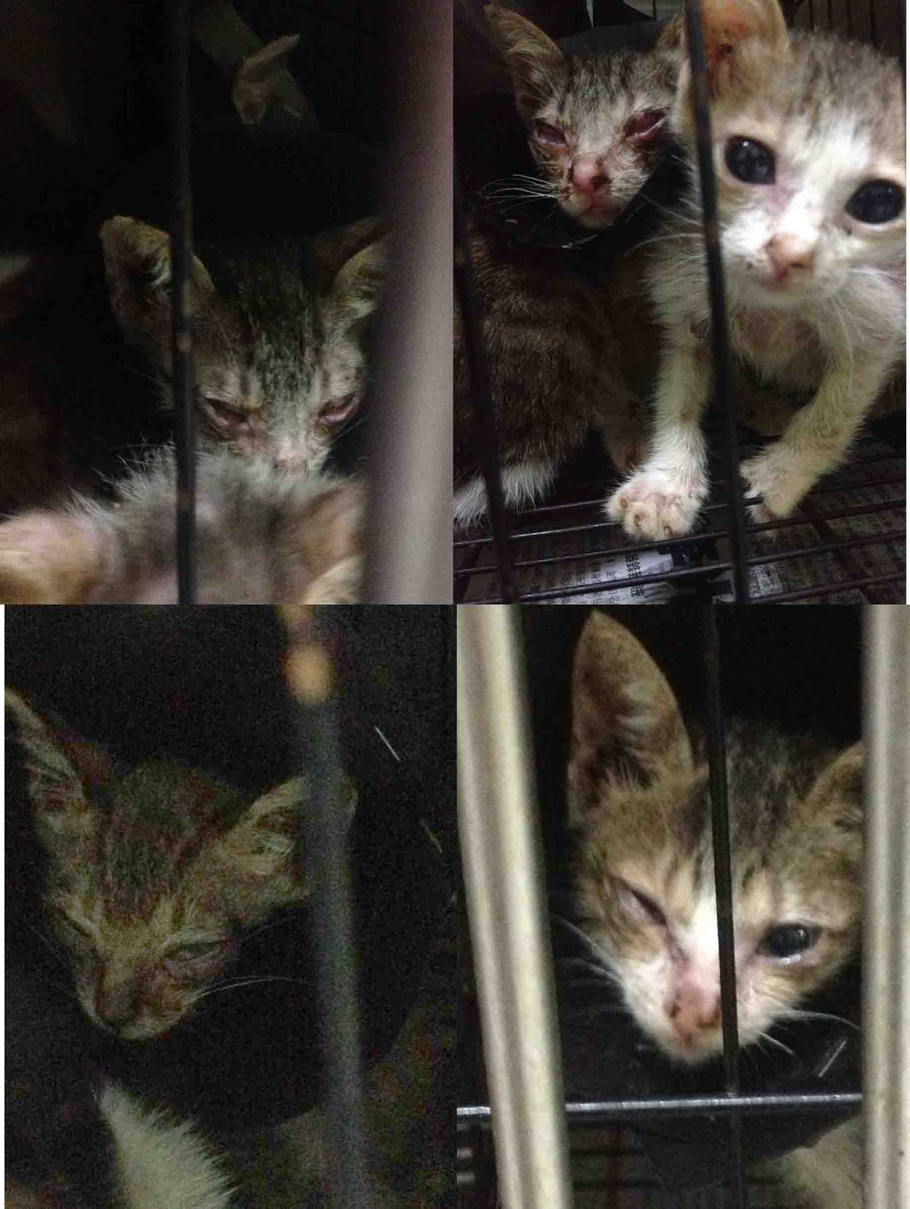 醫生檢查,這些幼貓眼睛是結膜紅腫、有打噴嚏、鼻涕,
