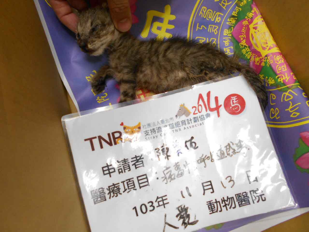 我趕快把牠帶回,準備將牠送醫~我擔心其他小貓的狀況,所以決定抓貓.