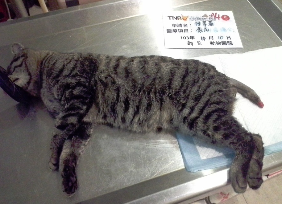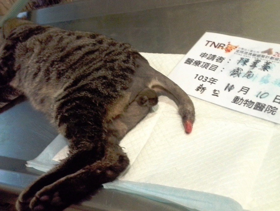 主題: 截尾虎斑 申請者姓名: Wei-chen Chen 花色: 申請日期: 2014-12-08 15:32:19 申請者部落格: 申請者臉書網址: 所在縣市/合作醫院: 新竹市/新竺動物醫院 治療費用: 5500元 需求人數: 7人 已結案 (2015-02-24 12:00:56) 報名人員: 梁咪子 x3(已付款)、mina Fan(已付款)、LittleSun(已付款)、林小儀(已付款)、林小儀(已付款)、 候補人員: 動物病情說明: 上週發現某社區旁有一些浪貓,也剛好遇到餵養人,向餵養人推廣TNR時,對方提到有隻虎斑貓尾巴受傷在滴血,於是我和餵養人約好誘捕,帶他去接受醫療並結紮,幸好誘捕十分順利。醫生說需要截尾,費用麻煩大家幫忙,感謝善心人士! 動物近況說明: 截尾、結紮手術後,小黑恢復得不錯,一週就出院了。餵養人說,隔天小黑就過去吃飯了。希望小黑以後都健健康康的!