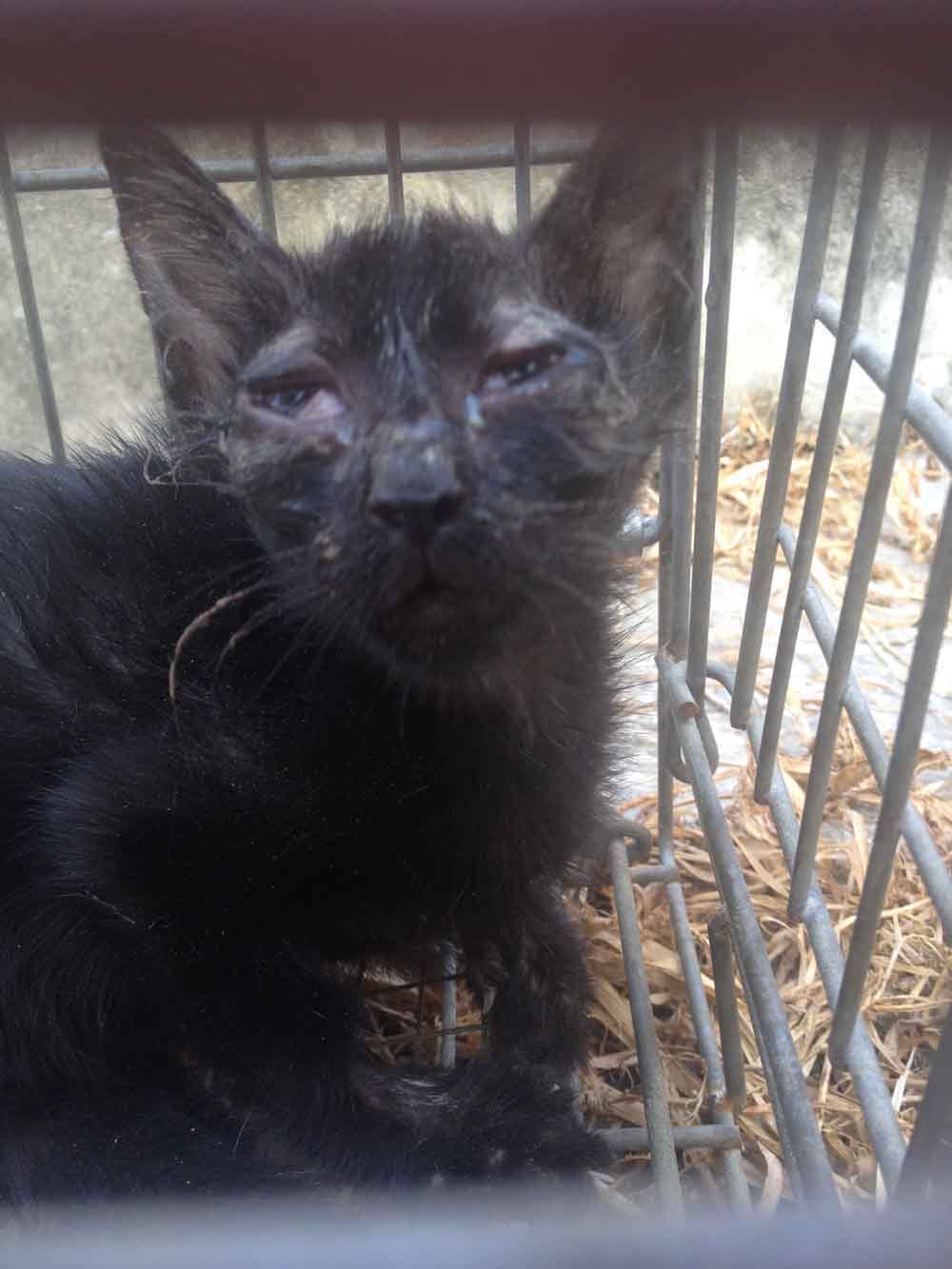 不過牠的眼睛腫腫的,感覺有發炎,眼神蠻嚇人的,一直喵喵叫,