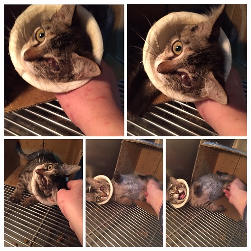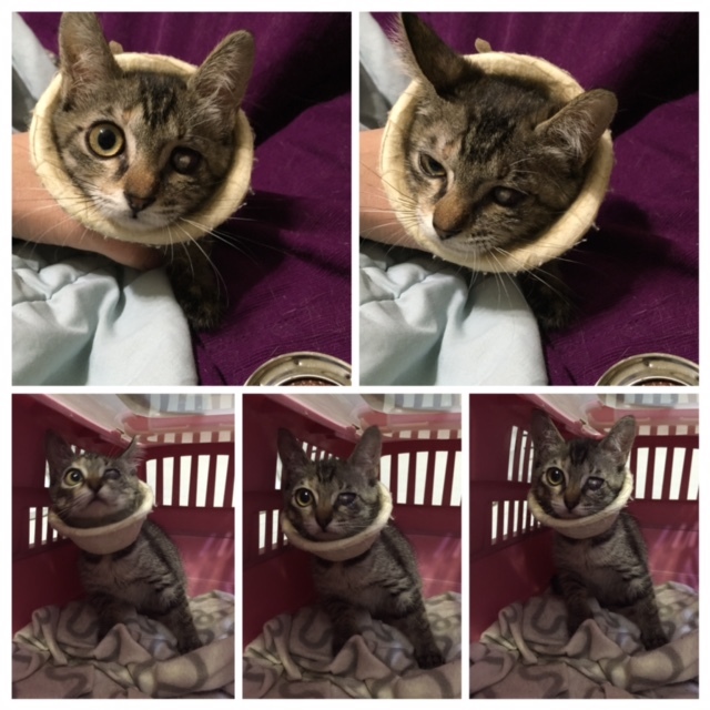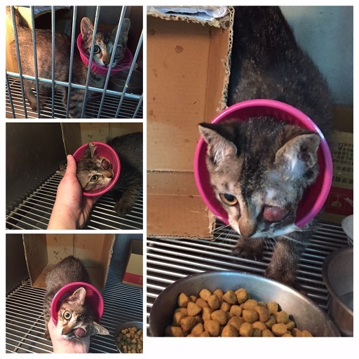 12/12-14:眼睛周圍的腫脹依舊,眼睛感覺整個霧霧的,原本醫生就說有失明的危機,以為治療至少可以救回一些視力,但看起來感覺真的沒救,個性容易緊張會哈氣,不喜歡人靠近,院方做的小頭套也一直掙脫,眼睛周圍還是很腫,分泌物多,但呼吸道感染的症狀已減緩許多