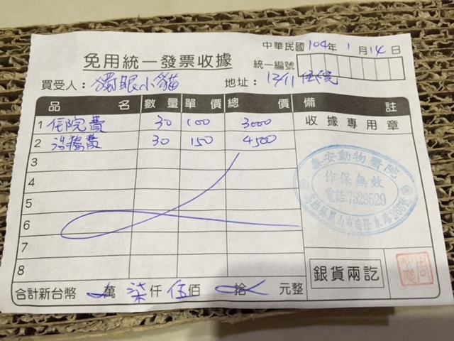 收據可抵稅請將地址mail至cashier@tnrtw.org0912940006763
