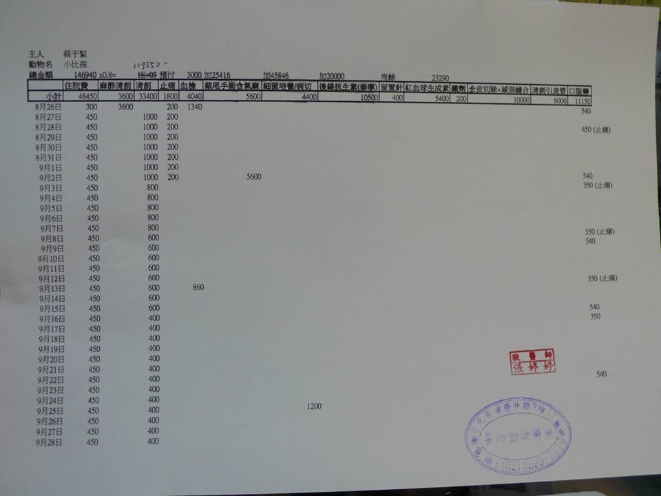 口服藥 :350~540不等共有四次=1880 (9/9有一筆350元當時未算入)