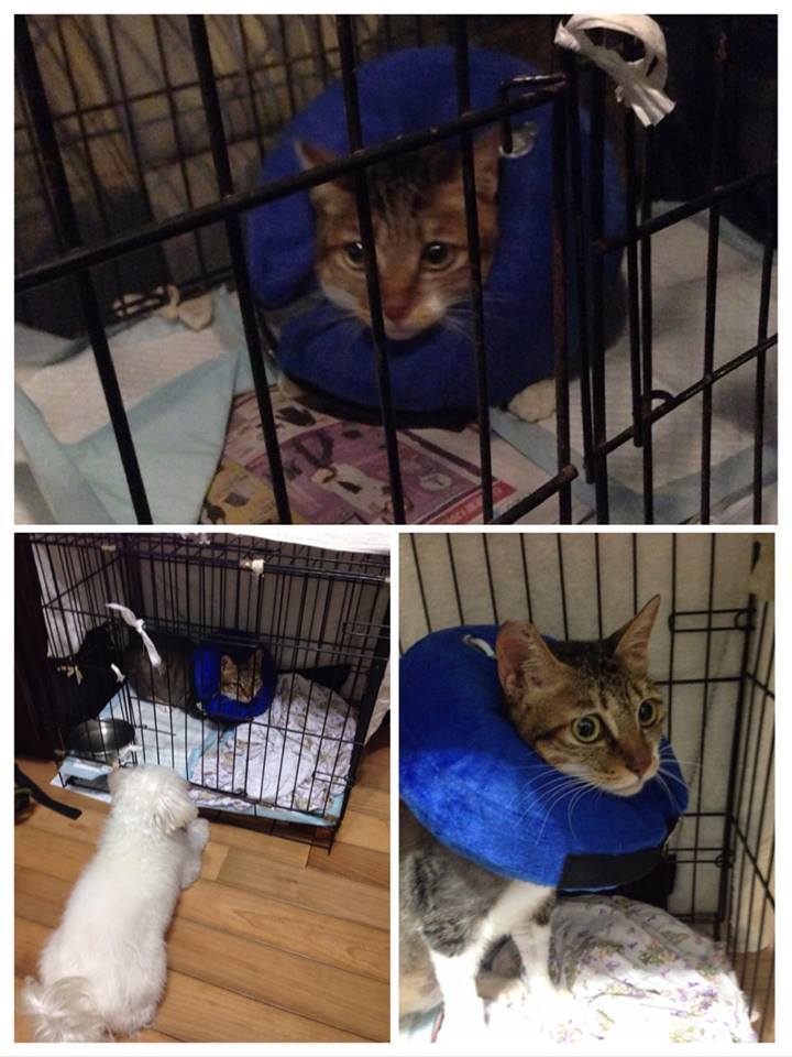 11/8 申請第二次補助的同時小比的復原狀況也算穩定。傷口縫合後在等拆線。而且小比孩很愛乾淨,她不愿意在籠子裡上廁所,每次都等到早晚換藥的時候才一次排出來。