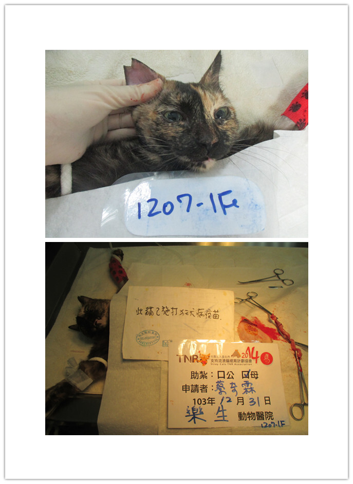 因為這隻玳帽母貓~是我之前在餵養區時~~一直沒抓到結紮的母貓~也知道生了好幾胎了