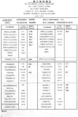12/5送去醫院做結紮,晚上8:37接獲醫生來電說明牠有子宮蓄膿問題,要做治療處置!!