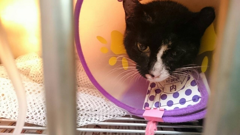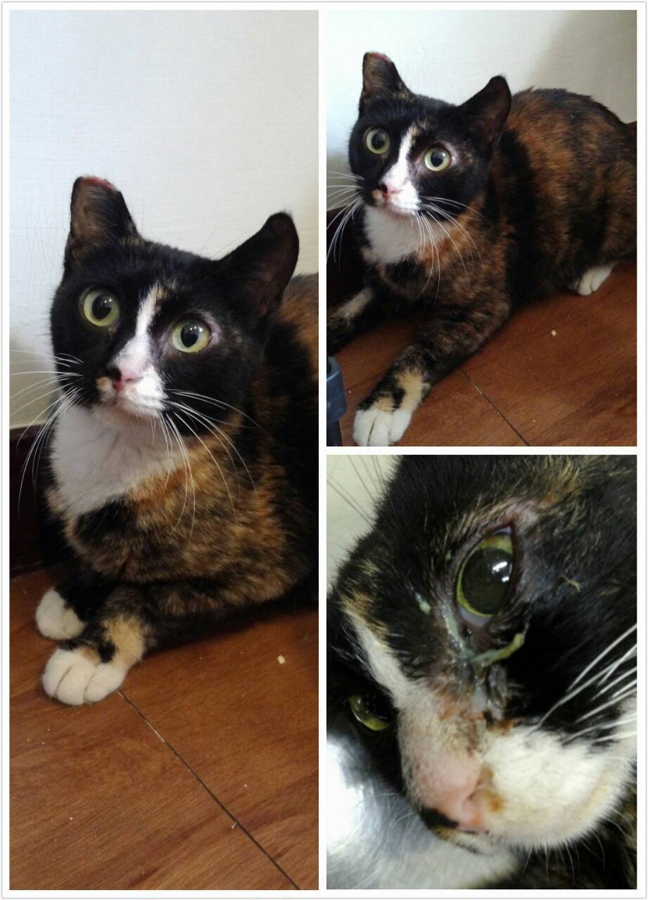 連續幾天晚上沒出現的三花母貓~發現時候已經倒在牆角無法站起~最後緊急送到人愛救治,才發現有鼻膿,傳染性角膜炎,肝炎,貧血,脫水等症狀