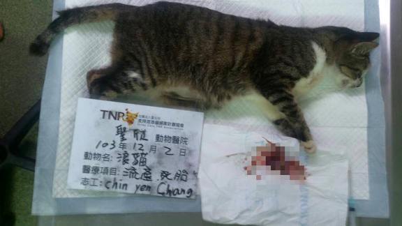 母貓狀況不穩且已經流產 而且小貓是死胎