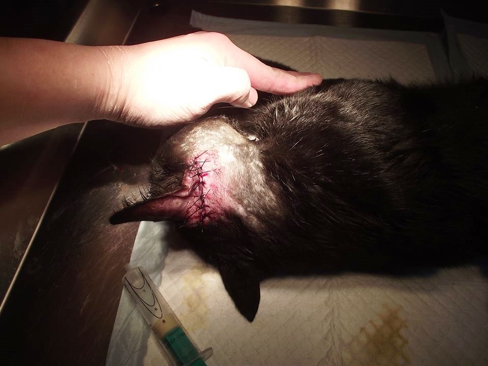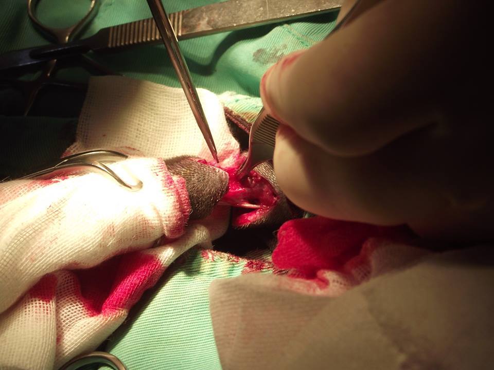 耳朵部分做清創消毒並縫合+尾巴則截掉某部分+並且一併結紮處理