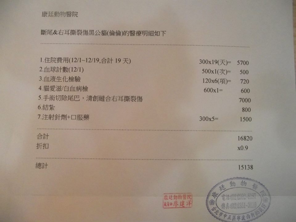 需做截尾手術,並且發現耳朵有被咬傷的傷口+同時還驗出是愛滋貓...