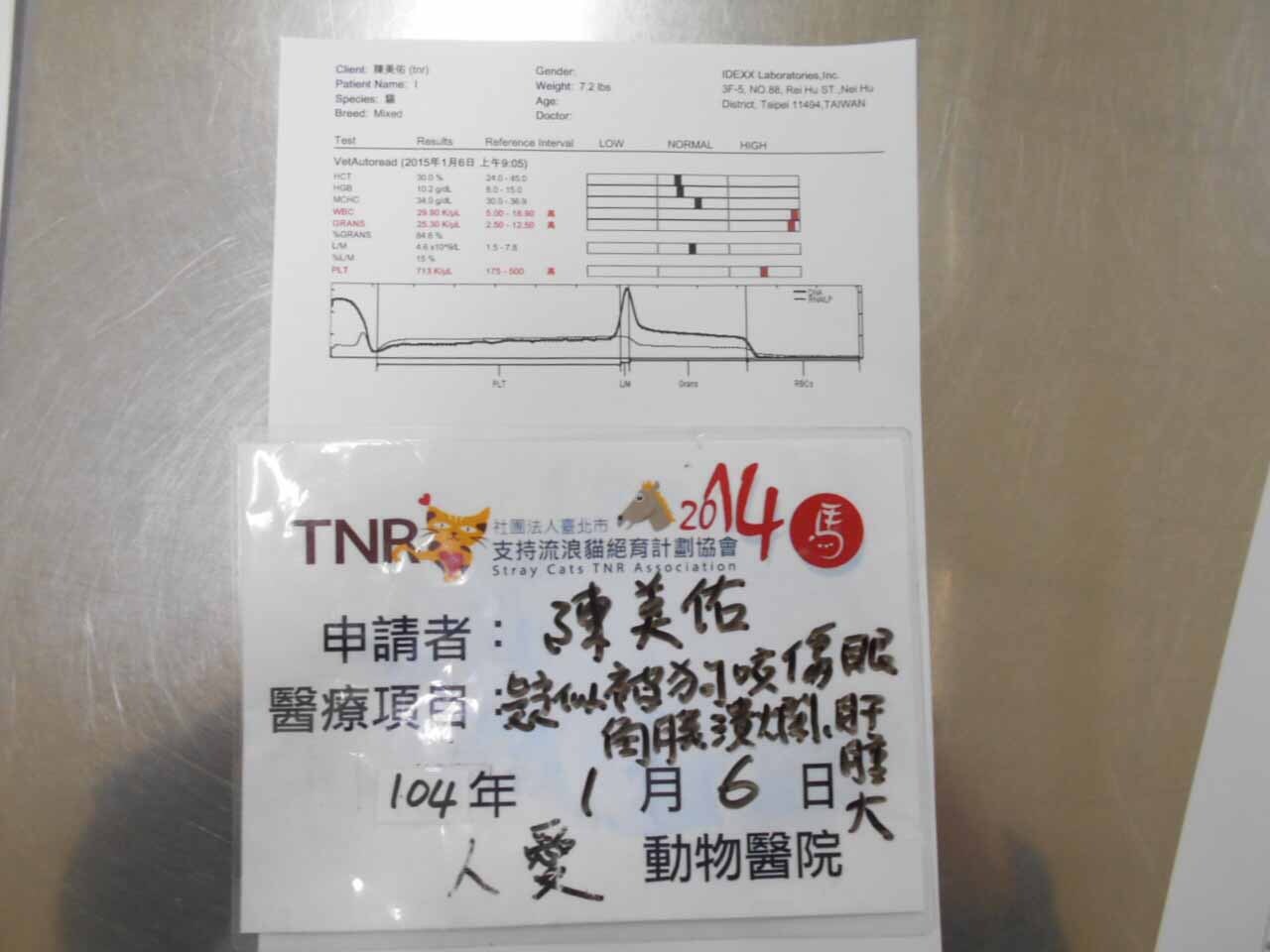 白血球及肝腫大也在治療中. 目前整體狀況恢復不錯.