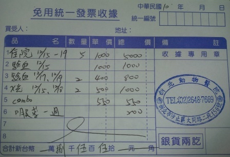 主題: 肺炎虎斑貓 申請者姓名: 陳炫龍 花色: 申請日期: 2015-01-20 11:33:16 申請者部落格: 申請者臉書網址: 所在縣市/合作醫院: 新北市/新北動物醫院 治療費用: 8550元 需求人數: 10人 已結案 (2015-02-24 13:09:05) 報名人員: 李佳蓉(已付款)、LISA(已付款)、詩瑤(已付款)、ERic YU(已付款)、Irene Hu x2(已付款)、Amen x4(已付款)、 候補人員: 動物病情說明: 貓咪目前正在新北市汐止區 新北動物醫院就診