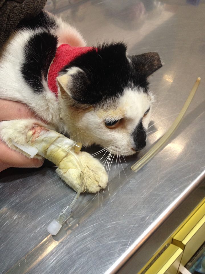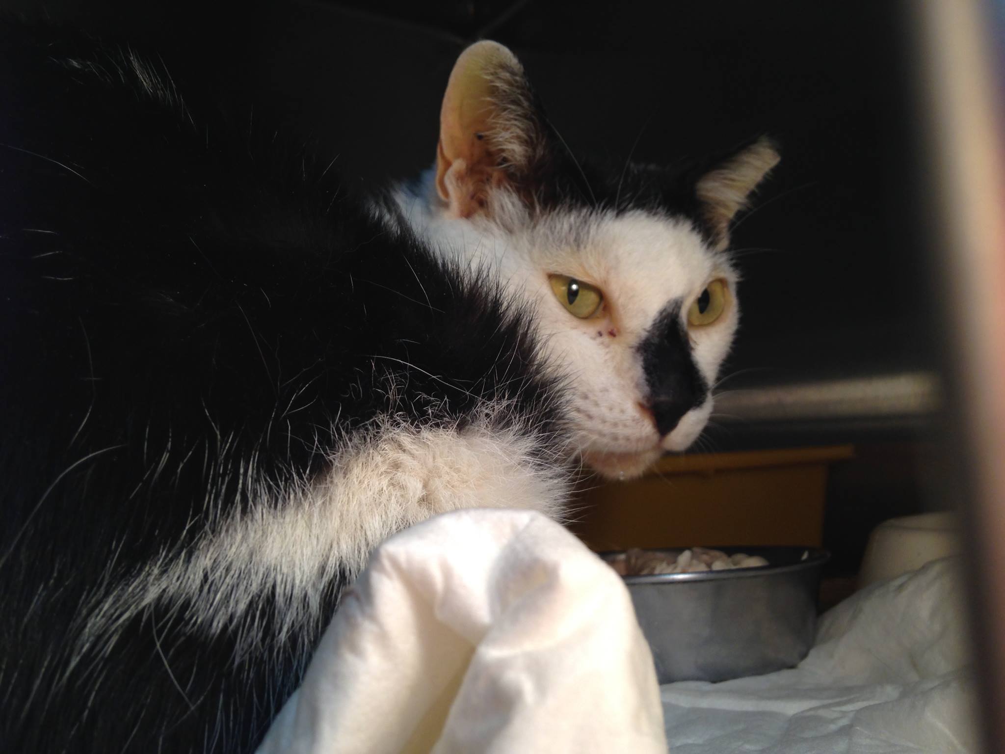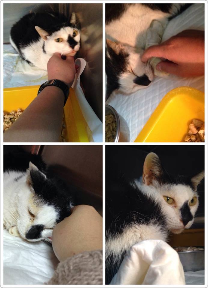 因為天天都是大吃大喝的他,突然消失兩天,出現後明顯的臉頰凹陷,臉部氾黃,試著要靠近他時,竟然異常的不讓我碰,最愛的罐頭也不想吃,背脊上的骨頭凸出明顯,也聞到了一股惡臭來自饅頭的嘴巴,隔天晚上要誘捕時,又因為選舉每晚的造勢,讓救援更加困難。