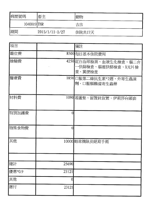吉吉的醫療費用