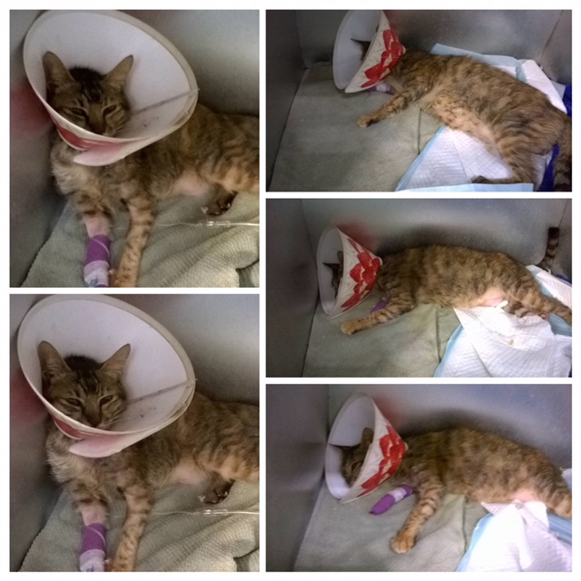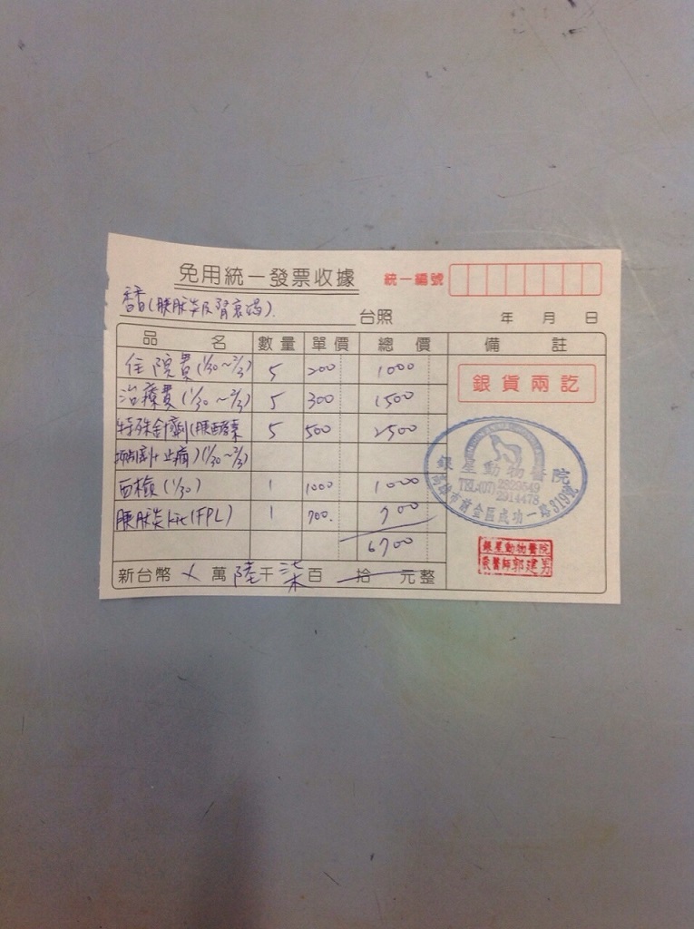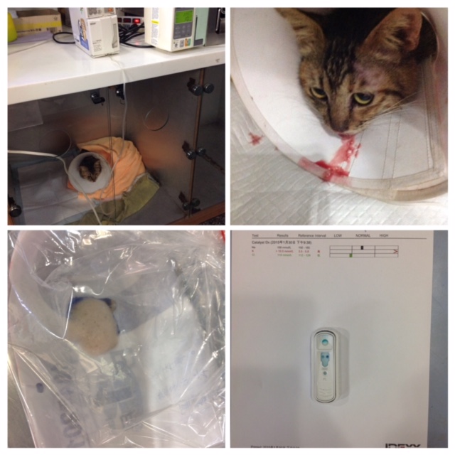 志工朋友在捕捉過程中發現香香有吐,有把嘔吐物拿給醫生看,醫生說情況不妙,抽血檢查發現是胰臟炎、腎衰竭、鉀離子破表,又寡尿、有膿尿,一直吐後來還吐血,情況非常嚴重,目前一天的住院費比之前貴,是因為要加打止痛劑減輕香香的疼痛