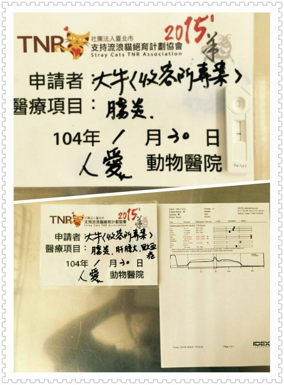 送往人愛動物醫院治療,檢驗出有腸炎,肝腫大,敗血症