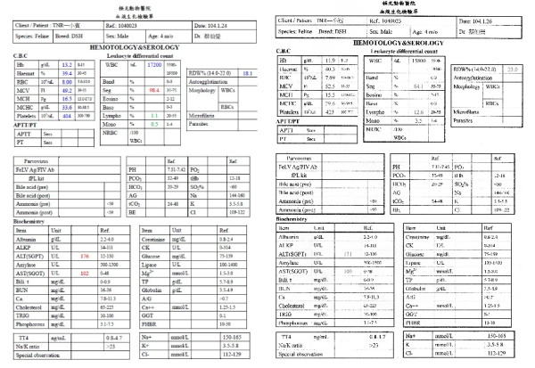 門診貓瘟檢驗.血檢.糞檢.口服藥1440元