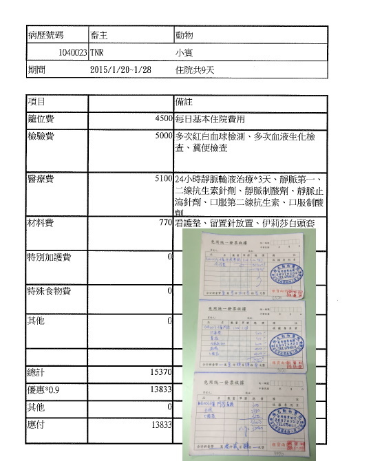 104.1.20-28住院醫療費用13833元