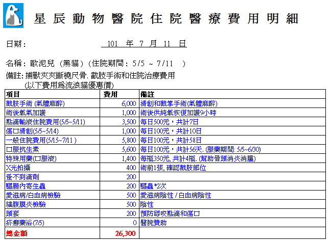 貓咪的醫療費用,需要大家的幫忙. 感謝網友的愛心與支持. 讓協會和志工們可以繼續幫助受傷的流浪貓. 感恩!