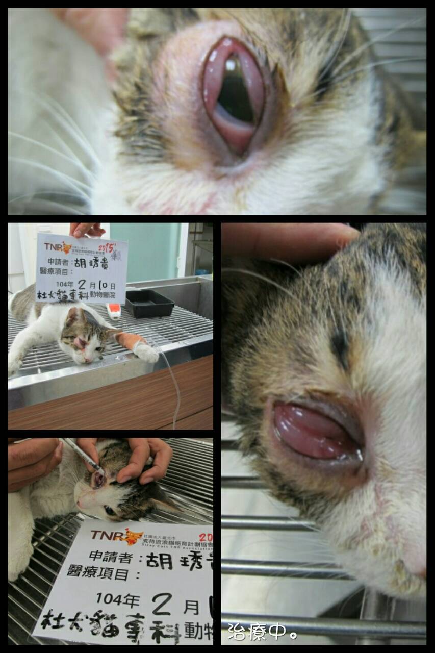 主題: 右眼流膿合併嚴重呼吸道感染小貓 申請者姓名: 胡琇貴 花色: 申請日期: 2015-02-25 02:28:54 申請者部落格: 申請者臉書網址: 所在縣市/合作醫院: 高雄市/恩澤動物醫院 治療費用: 5290元 需求人數: 6人 已結案 (2021-06-03 00:03:51) 報名人員: 鄭余丞(已付款)、王千枝 x2(已付款)、Winnie Lu x3(已付款)、 候補人員: 動物病情說明: 姐姐來自志工的餵養區,已TNR一段時間,最近由於天氣變化大,導致姐姐臉上開始有一些分泌物,開始胃口變少,呼吸聲大,眼睛也開始出現分泌物,然而2/9誘捕,2/10一早送醫診視姐姐結膜發炎化膿,呼吸到嚴重感染,醫師於眼睛直接注射藥劑緊急處理,抗生素點滴治療,所幸能保住眼睛無大礙,希望大家能給姐姐一個醫療的機會,謝謝大家!