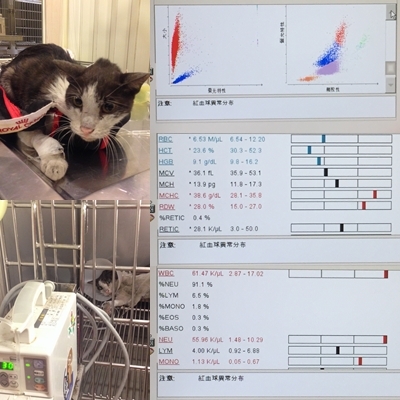 嚴重脫水、貧血、血紅素不足,白血球6萬1己達敗血症,情況危急