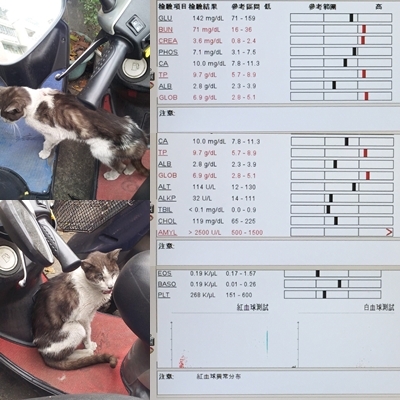 尿毒指數BUN有回到正常,白蛋白ALB偏低,胰臟指數仍超過2500