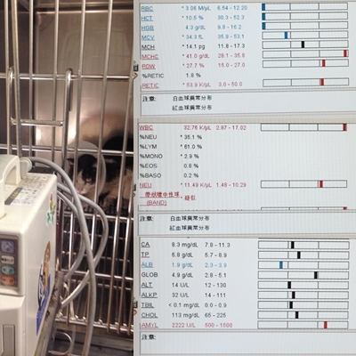 檢查結果賓賓有脫水、腎衰竭、胰臟炎