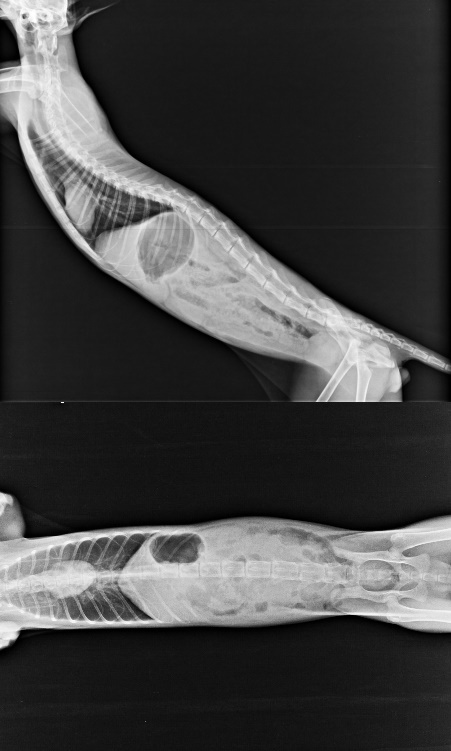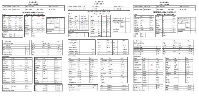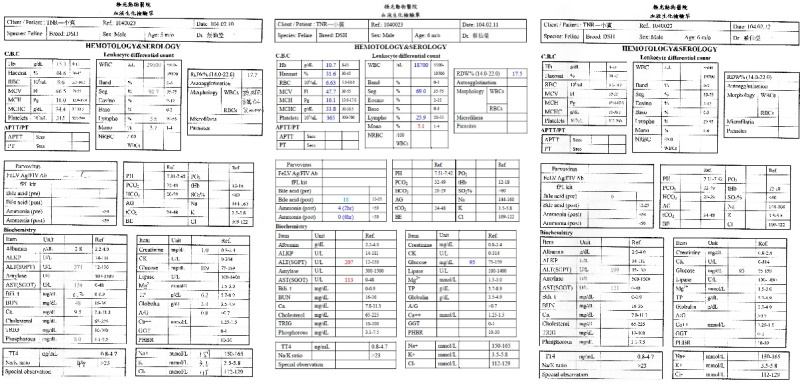 出院後回診,血檢白血球2萬9,肝指數偏高,有點脫水,超音波檢查小腸蠕動很快,大腸動很慢,x光片無明顯異常,上點滴給予抗生素治前三天數值緩緩的下降,第七天數值又開始攀升,改給與二線抗生素和少量類固醇狀況稍為穩定,精神和食慾尚可,逢年節在小賓狀況穩定後,已先出院回安養之家。