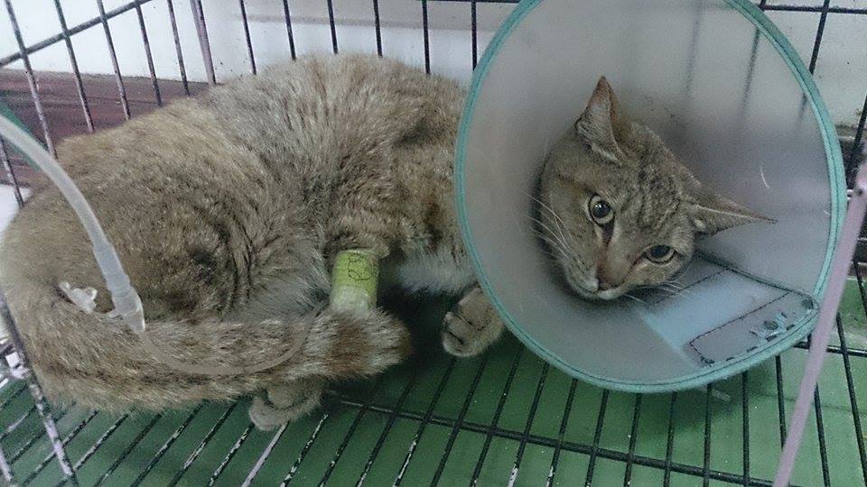 主題: 脫水虛弱走路不穩虎斑貓 申請者姓名: 許桂菱 花色: 申請日期: 2015-03-17 23:56:34 申請者部落格: 申請者臉書網址: 所在縣市/合作醫院: 彰化縣/成愛動物醫院 治療費用: 5230元 需求人數: 6人 已結案 (2015-04-14 17:29:36) 報名人員: fotojo(已付款)、Shu-Chun Yu(已付款)、黃小語(已付款)、陳昱先(已付款)、Tiffany Cheung x2(已付款)、 候補人員: 動物病情說明: 此母貓在餵養區不見蹤影10來天,本以為可能發生意外往生,3/5下班如常至餵養區,她卻出現但脫水消瘦及走路不穩歪斜,一度以為是否為後腳受傷,趕緊先向住戶要了紙箱,送醫檢查後醫生認為非腳傷,進行生化及二合一血檢,有貧血其他指數無特別異常,快篩有愛滋,貓無發燒但脫水虛弱無法自行進食,先施予點滴改善脫水及住院觀察!