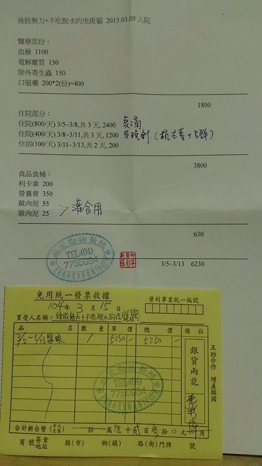 醫療費用總金額共6230元,志工負擔1000元,申請醫療費用是5230元動物近況說明: 現由志工接回中途照料,會繼續尋求其他方式來改善無力搖晃症狀!