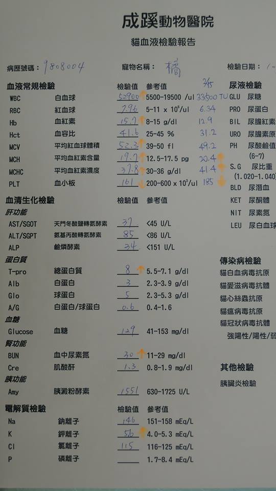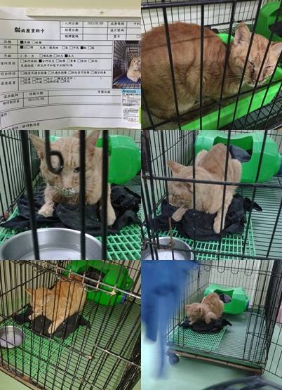 主題: 中和收容所感冒嚴重的橘貓 申請者姓名: 劉蕊瑄 花色: 申請日期: 2015-04-02 15:16:13 申請者部落格: 申請者臉書網址: 所在縣市/合作醫院: 新北市/成蹊動物醫院 治療費用: 8150元 需求人數: 10人 已結案 (2021-06-03 00:06:29) 報名人員: a-song(已付款)、張承歡(已付款)、Even Chen(已付款)、Nadia Huang(已付款)、cynthia(已付款)、高永顗(已付款)、esther(已付款)、Joyce Yang(已付款)、Jill(已付款)、Ellen Cheng(已付款)、 候補人員: 動物病情說明: 中和收容所志工接貓發現的感冒嚴重橘子貓,已經不吃不喝多天,所內照顧人手不足,擔心拖下去大橘子性命不保,所以帶出治療,到醫院的時候已經嚴重脫水,體重過輕,嚴重鼻氣管炎 動物近況說明: 經過治療後大橘已經康復,並已經結紮,希望大家出一份大橘的醫藥費!感謝