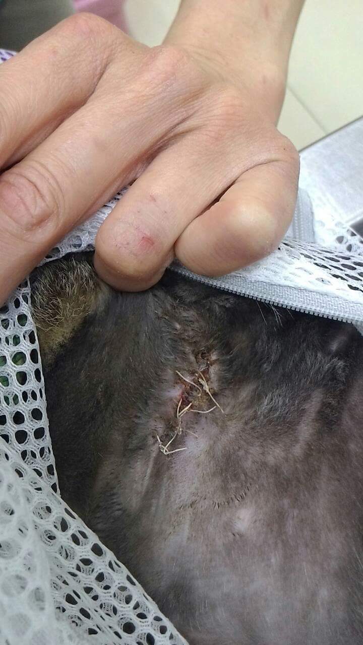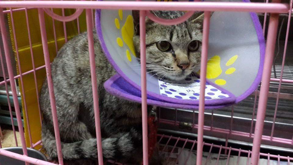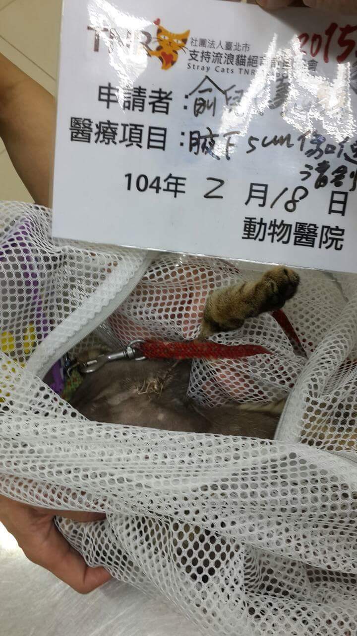 高雄壽山2/11收容所此次我分批到3隻貓咪,在人愛動物醫院部份由我負責申請,其中一隻母虎斑,左腋下有個傷口潰爛,需清創縫合,原本收容所已結紥的傷口需拆線,剪耳,原本預估一個禮拜的醫助費用,原2/18除夕當天要接出,醫生發現傷口還在發炎還不能拆線 ,討論結果在延長一個禮拜7天住院天數。