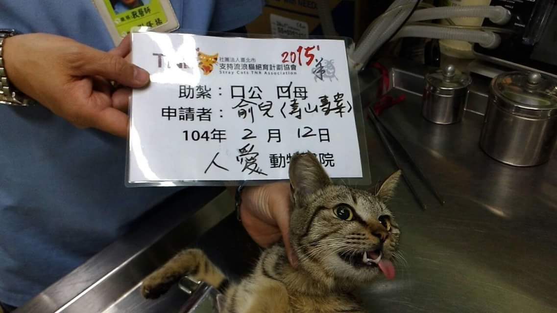 主題: "104/2/11高雄壽山專案" 申請者姓名: 張婷俞 (俞兒) 花色: 申請日期: 2015-03-15 18:58:43 申請者部落格: 申請者臉書網址: 所在縣市/合作醫院: 高雄市/人愛動物醫院 治療費用: 5830元 需求人數: 7人 已結案 (2015-04-14 17:28:57) 報名人員: Chia-Chieh Chiang x4(已付款)、林天祥(已付款)、JANICE(已付款)、Candace Shiue(已付款)、 候補人員: 動物病情說明: 2/11從壽山收容所共領出22隻貓,人愛動物醫院3隻貓咪由我負責醫助部份,虎斑左腋下傷口需清創縫合,在收容所已紥未剪耳,一併做剪耳。