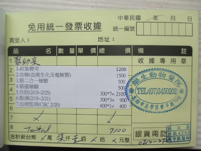 2/26貓咪恢復正常,已接出院