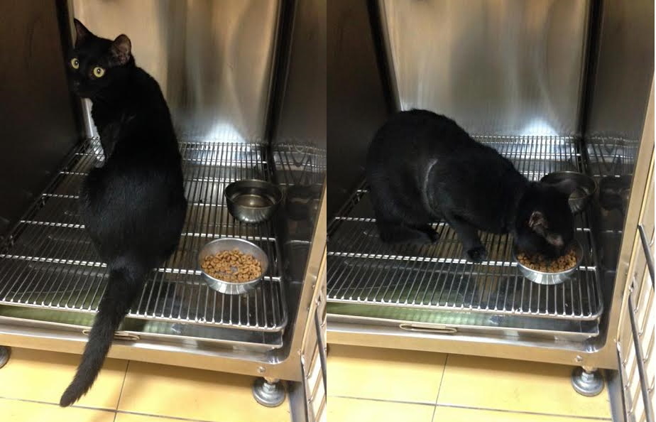 估計腋下傷口大,至少還要再觀察一星期看第二次縫合的愈合效果。小黑貓非常親人又好脾氣,怎麼摸怎麼抱都可以,只要有人靠近就會把頭放人的手上討摸摸,醫師說第一次縫合時,腋下傷口有些腐爛,所以不能縫得太密,現在傷口比之前平整,所以可以縫得比較密些,腋下傷口比較不容易恢復,所以癒合的時間比背部及前胸長。4月初板橋的中心動物醫院醫師告知,在第二次縫合手術後就可以幫貓咪找中途或是居家照顧後,積極找中途,4/11與中途約在東湖預計施打疫苗袋回照顧,卻發現貓咪的傷口縫線又全部崩掉了而且傷口有些發炎現象,需要每天清創讓傷口長些肉才可再進行縫合手術,因中途住在東湖商量後決定貓咪先留置在東湖佳康動物醫院這邊養傷,一來方便每天去看他了解傷勢,二來也可以觀察他的個性方便日後送養之後,貓咪就留在東湖佳康動物醫院這邊,我跟朋友就近每天去醫院探視+送便當(罐罐),第一階段的醫療費用還請各位幫忙。目前已經全癒.健康狀況極好.並由貓友領養.持續追蹤關查中