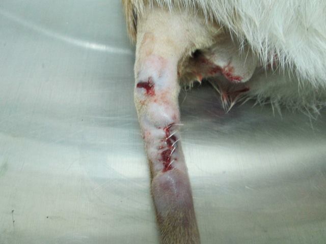 主題: T貓T到尾巴受傷的貓 申請者姓名: 趙慧曄 花色: 申請日期: 2015-04-27 12:27:56 申請者部落格: 申請者臉書網址: 所在縣市/合作醫院: 屏東縣/愛生動物醫院 治療費用: 4000元 需求人數: 5人 已結案 (2021-06-03 00:06:02) 報名人員: Frankie(已付款)、張承歡、lavinia x3(已付款)、Chenyu Chang(已付款)、 候補人員: 動物病情說明: 今天深夜靠著一口貓罐頭很快順利的誘捕到肚子極餓非常愛吃貓罐頭的小白貓去結紮,小白貓是男生,誘捕到醫院的時候才發現貓咪有受傷流血,醫生說貓咪是被咬傷,傷口很嚴重已經化膿了,還好貓咪順利誘捕,本來是結紮,沒想到意外變成送醫治療,很心疼... 動物近況說明: 已痊癒出院了!!謝謝大家的愛心!!謝謝~~