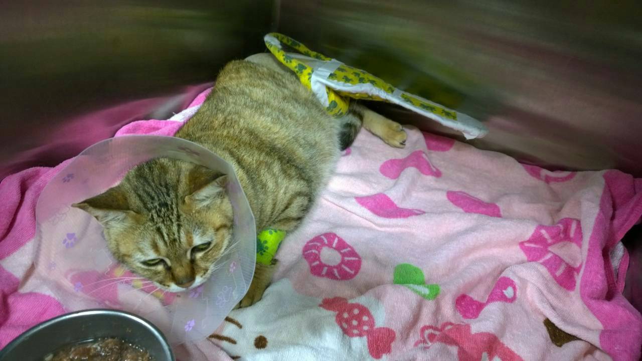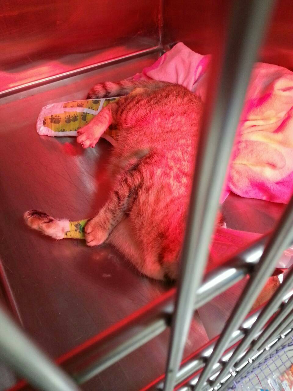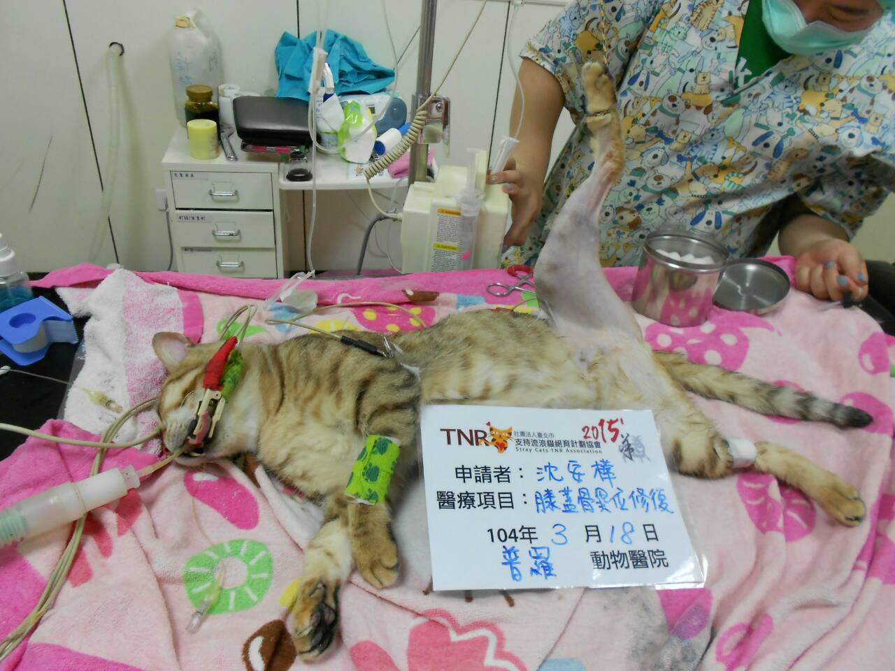 主題: 膝蓋脫臼的貓 申請者姓名: Ann Ann 花色: 申請日期: 2015-04-20 19:26:28 申請者部落格: 申請者臉書網址: 所在縣市/合作醫院: 桃園縣/普羅動物醫院 治療費用: 9920元 需求人數: 12人 已結案 (2021-06-03 00:05:58) 報名人員: 喬安(已付款)、Jasmine Lin(已付款)、魏蓉(已付款)、Mavis Tu(已付款)、Pei Ci(已付款)、吳孟潔(已付款)、Kenix(已付款)、Sarah(已付款)、Joba Huang(已付款)、lavinia x2(已付款)、小可(已付款)、 候補人員: 動物病情說明: 我本身是有在餵養大溪的浪貓,因昨晚餵食時看見其中一位食客走路怪怪的不是很穩,天色很暗無法確定是不是腳有受傷,今天趁假日就趕緊抓起送醫,送到協會有合作醫助的"普羅動物醫院",經觸診及X光片的顯示,醫師說貓咪左腳膝蓋骨有移位脫臼現象,是外力所致.而也引發了一些關節炎,醫師建議要手術,不然會變三腳貓,我餵養的區域有2X多隻貓,都是自費TNR,近期因有3孕貓,來不及等到春天,就帶去結紮了,本身沒有在向外界求助,但因身上積蓄都用在孕貓結紮了,大媽的脫臼情況需要手術,對於龐大的醫療費用感到窘迫,希望協會能幫忙大媽的醫療費 動物近況說明: 3/18下班直奔醫院探視.麻醉剛退完.親手餵了罐罐.1碗吃不夠.再開一罐餵她~腳用固定板固定著.看她想站起來卻不好站立..心疼著...!等待醫師要休診時詢問醫師.大媽的骨頭情況 醫師說:動手術時.看到膝蓋骨的軟組織嚴重瘀血.韌帶分左右兩側.外側韌帶有斷裂.所以在韌帶處有縫線.把膝蓋異位處移回膝蓋窩內 前2星期讓她休息.等自體產生類似韌帶的東西.所以用固定板固定.不讓她動受傷的腳