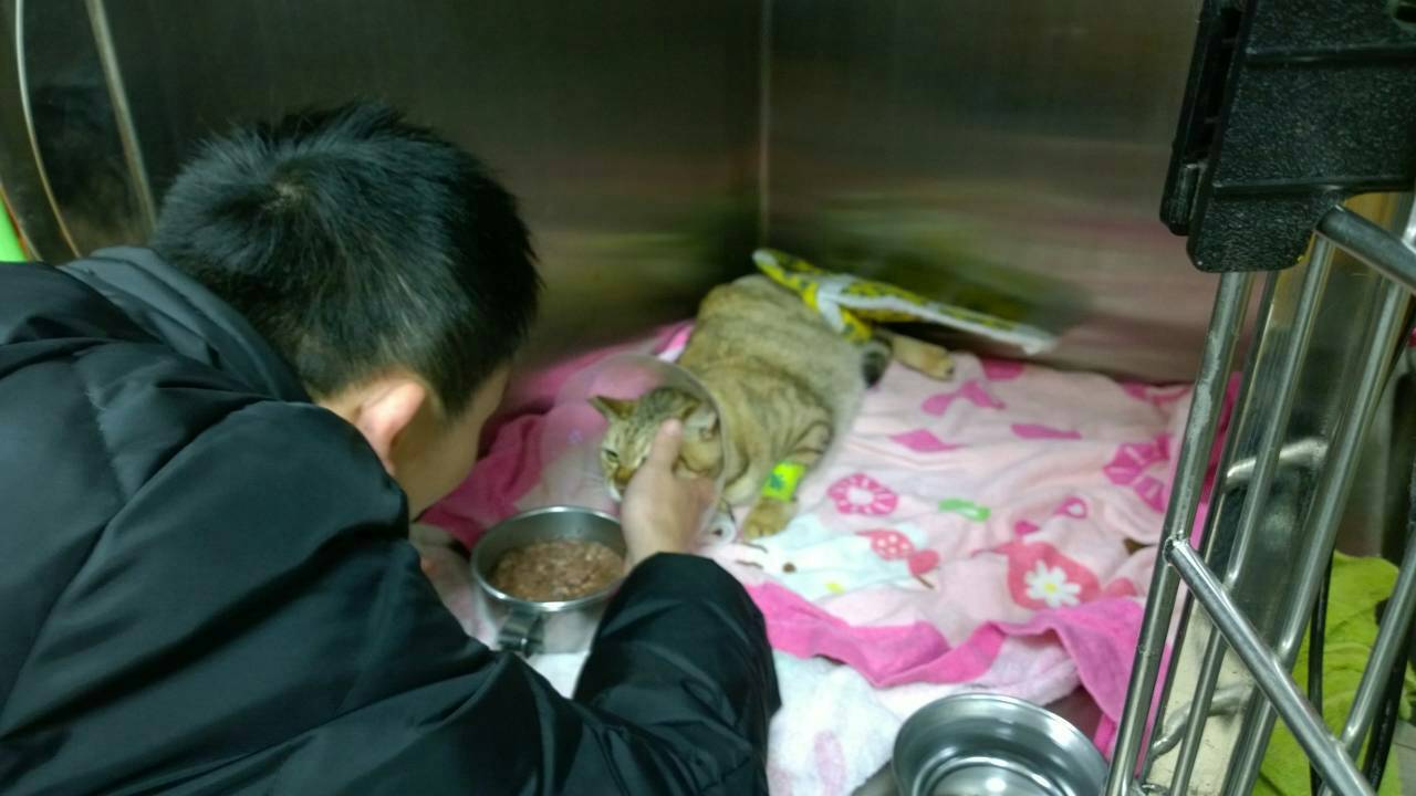 4/6下班探視 因大媽在籠內不太走動.都窩著.所以院方幫忙按摩腿.才不會造成萎縮