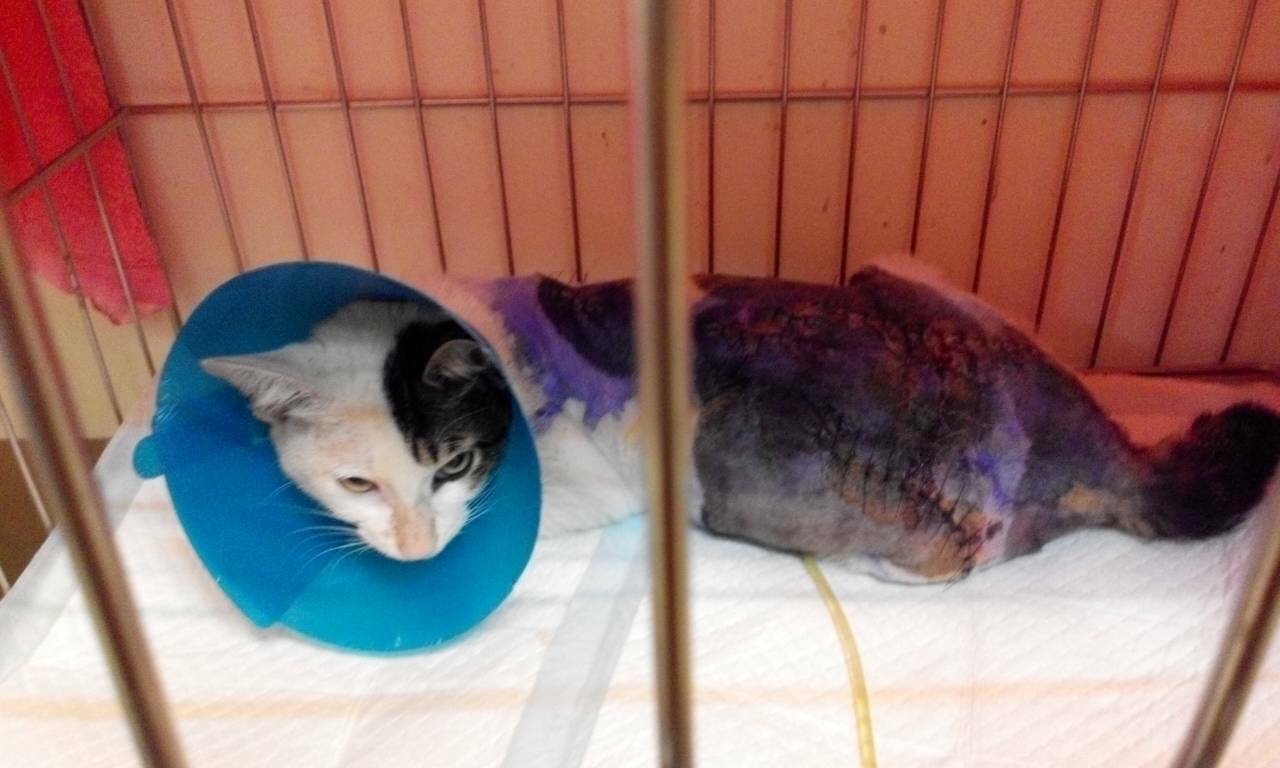 主題: 被獵犬追殺的小冰 申請者姓名: 鄭紫淳 花色: 申請日期: 2015-04-08 21:27:45 申請者部落格: 申請者臉書網址: 所在縣市/合作醫院: 高雄市/新德民動物醫院 治療費用: 16560元 需求人數: 19人 已結案 (2021-06-03 00:05:55) 報名人員: Chihchia Chang x2(已付款)、Patrick、lenneth(已付款)、黃素芬(已付款)、memin、CC(已付款)、mandy lin(已付款)、Egg Sh(已付款)、Shan Chou x10(已付款)、PhoebeWang(已付款)、ERic YU(已付款)、 候補人員: 陳筱惠、李坤財、 動物病情說明: 半夜五點,小冰在我家門口被四隻獵犬追殺,像五馬分屍那般咬著不放,我斥喝牠們,小冰卻受了重傷,後腿用拖的拖到車底下,好不容易她拖到我身邊 動物近況說明: 傷口恢復的不錯,仍需要擠尿擠便,左後腳小腿骨頭有問題,所以無法正常行走