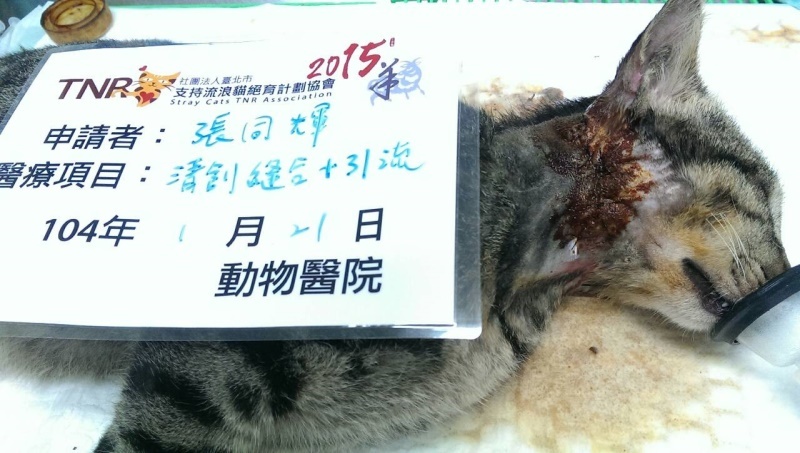 這隻貓咪於帶出時發現臉頰有一個大洞,送至醫院結紮並縫合傷口裝置引流管,注射抗生素控制感染,1/26日拆除引流管持續給予口服抗生素,歷經五十天的休養治療傷口照護,現已恢復健康放回原處,醫療費用還請各位幫忙。