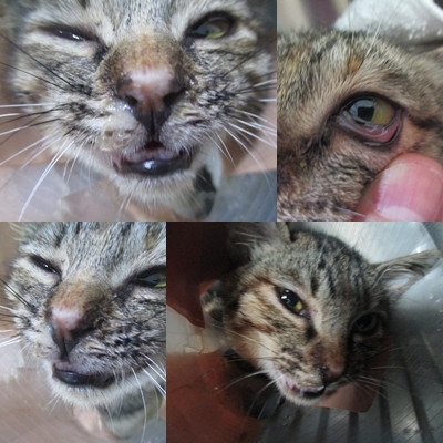 小虎妹有脫水、眼結膜炎、打噴嚏、鼻膿及眼分泌物等鼻氣管炎症狀