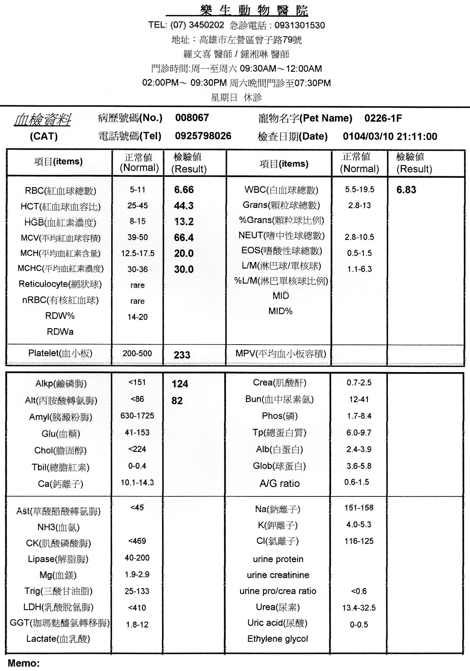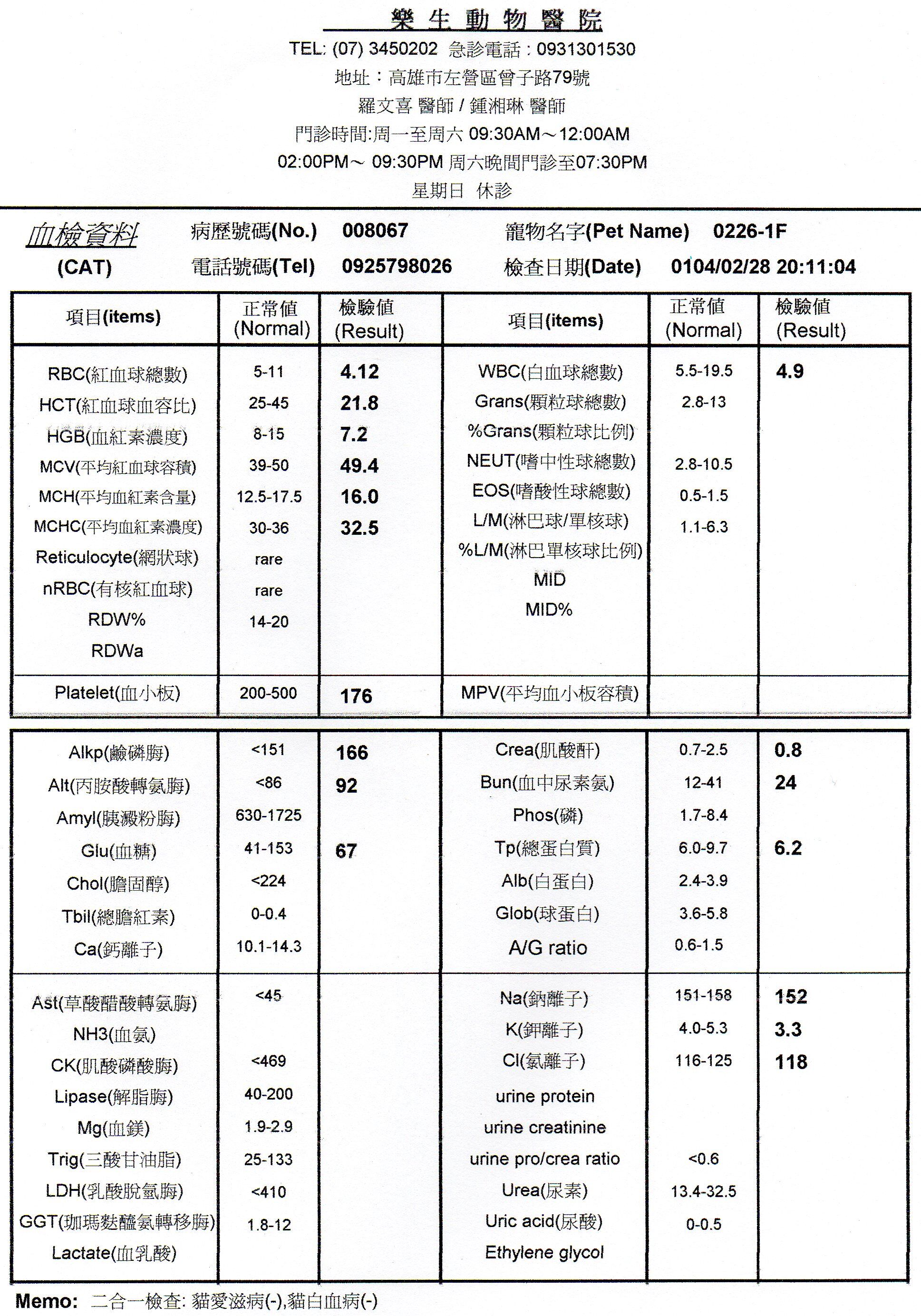 且今天做了血檢複驗,貧血已改善,白血球及肝指數也正常了