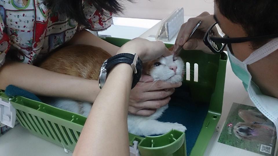 溫泉君還有個很奇妙的預知把戲,只要當我們計劃要帶他參加送養會,他就開始生病……不是發燒、要不就是眼睛發炎……