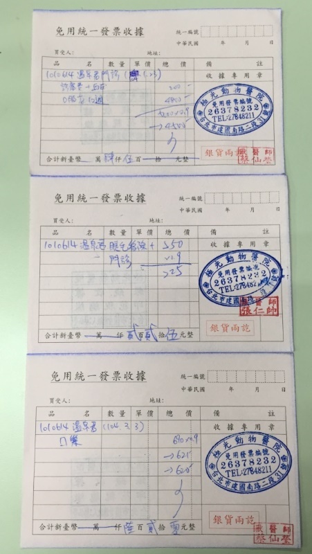 103.10.21診察、血壓量測、眼睫毛拔除、止吐葯、糞檢 675