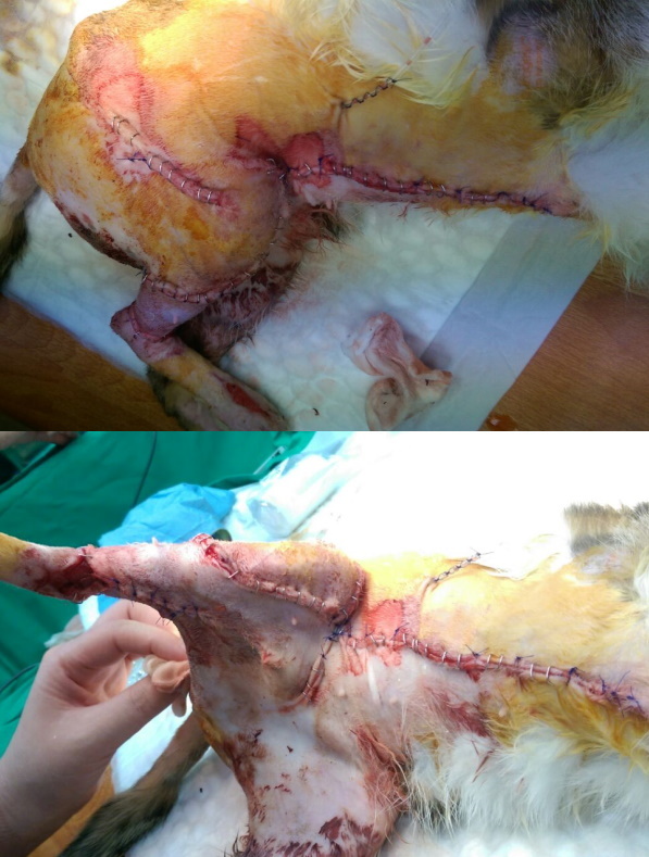 主題: 宜蘭收容所全身撕裂傷的小宜 申請者姓名: 臺北市支持流浪貓絕育計劃協會 花色: 申請日期: 2015-03-25 14:16:43 申請者部落格: 申請者臉書網址: 所在縣市/合作醫院: 台北市/沐恩動物醫院 治療費用: 78862元 需求人數: 81人 已結案 (2021-06-03 00:05:07) 報名人員: Amelie Chiang x3(已付款)、PeiPei(已付款)、bbfish1224(已付款)、QQ(已付款)、裘爸(已付款)、Miao Mie Mie(已付款)、vopoo、yen36(已付款)、Jill S.(已付款)、Chris Chen x2(已付款)、Jill S.、芳芳(已付款)、claire x3、claire x5、claire x5(已付款)、Ariel Hsu(已付款)、Forest(已付款)、Forest(已付款)、咪寶的阿木 x10(已付款)、小黃、小黃(已付款)、Lynn Wu x3(已付款)、陳小茜(已付款)、Becca Huang(已付款)、Sunny Chen(已付款)、larina(已付款)、Erica Wu(已付款)、Jessie(已付款)、Cheer(已付款)、MAC創意人偶活動公司 x2、Sherry Ko(已付款)、道森(已付款)、媽咪陳(已付款)、FAT5 x2(已付款)、若(已付款)、BigMao(已付款)、Yu-Ling Chang x5(已付款)、龐達安 x5、小涵 x2(已付款)、陳咩寶(已付款)、VVHSU(已付款)、Alisa Huang(已付款)、Karen(已付款)、MAC創意人偶活動公司 x2(已付款)、Mai Lin Lai x2(已付款)、Willy Hu(已付款)、Mei Mei Liao(已付款)、劉大妞(已付款)、sandroio(已付款)、Norman Wu(已付款)、Eu Gene(已付款)、Amber Chung(已付款)、Amber Chung(已付款)、Jessica Chen(已付款)、Hide x2(已付款)、ERic YU(已付款)、Nadia Huang(已付款)、Shelby Huang、Tien-Yin Ku x3(已付款)、戀糖bear(已付款)、 候補人員: Queena Wang、Winnie Lu、 動物病情說明: 1/27宜蘭收容所通知,有隻貓咪像破布娃娃一樣身上腳上多處撕裂傷,緊急前往帶出就醫,鎮定檢查傷口小腿以下及背部皮膚缺損嚴重予以清創,並拍攝X光片發現右大腿骨折,,因傷口有感染的狀況,要等感染控制才能進行縫合,期間先給與包紮避免接觸感染,2/5日進行大腿骨骨折修復手術,2/12進行小腿皮膚缺損皮瓣修復手術並裝置引流球,所幸貓咪尚年幼復原狀況良好,2/24進行最後階段手術背部皮膚傷口縫合,並持續給與鈣和骨骼生成針劑幫助骨骼生長癒合,3/12日貓咪狀況穩定拆線出院回安養之家繼續修養至骨骼完全生長,醫療費用還請各位幫忙。