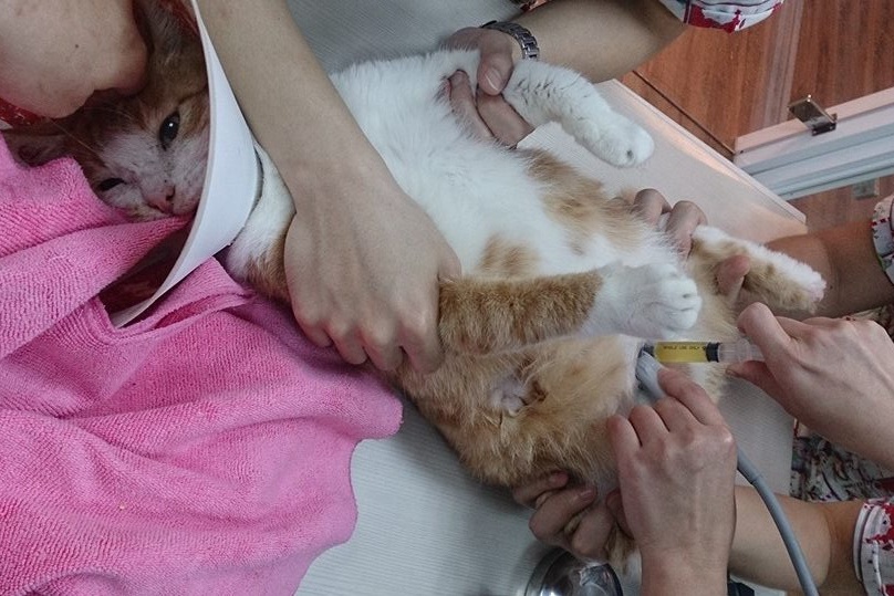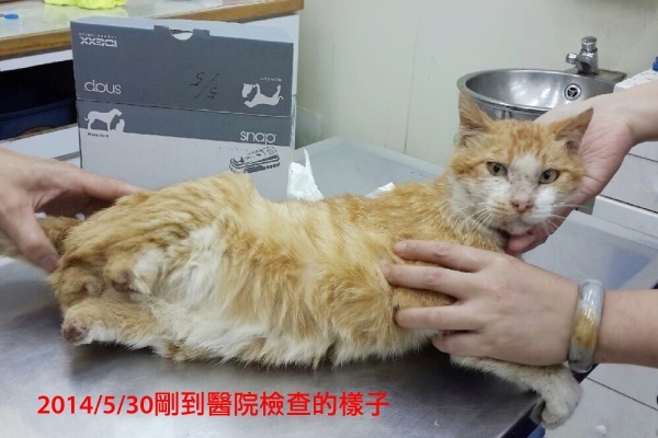 志明已經變得白白胖胖肥肥嫩嫩,有6.8公斤的巨大體型,雖然他的雙腳斷肢因為摩擦有厚厚的繭,在室內還是鋪了厚紙板讓志明行走更加舒服,2015/3月起照顧員發現志明排尿似乎有點困難在砂盆裡蹲很久,送醫檢查,採尿送檢,尿中有草酸鈣結晶,醫生建議要吃泌尿道處方,並給予利尿通幫助,醫療檢驗費用還請各位幫忙