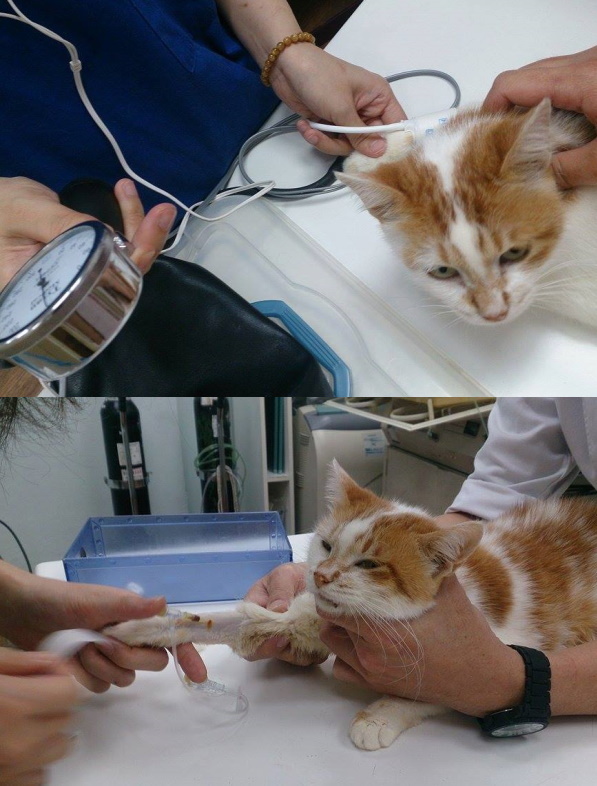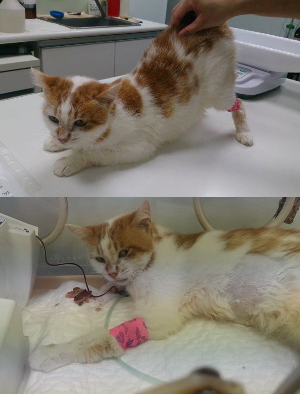因為寶貝年事已高,任何治療都會危及性命...每週例行檢查的她,上週血溶比仍在30以上,今天已掉至11..因思及侵入性治療可能貓咪撐不過手術...決定先輸血看是否能讓狀況回穩,壞的情況可能是輸血仍無法挽救...好的狀況是可能會讓血升起來,但也可能因出血點無止住需不斷找血貓。