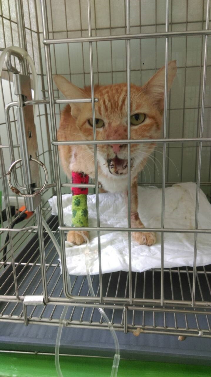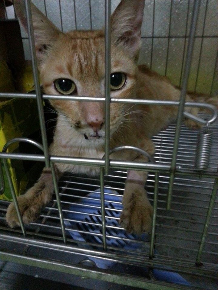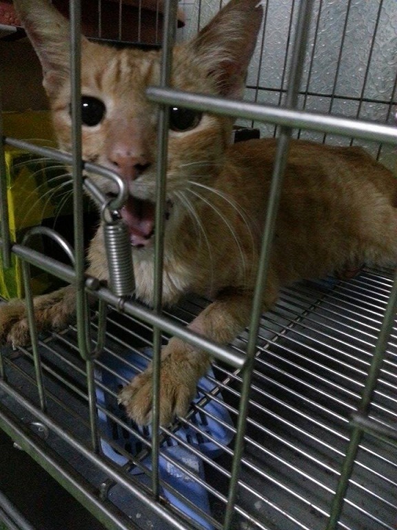 由於之前有被誘捕籠誘捕過去醫院,導致巧咪對誘捕籠的恐懼,無法順利誘捕,直到4/11讓牠餓兩天再用大型誘捕籠牠才順利將牠送至醫院治療