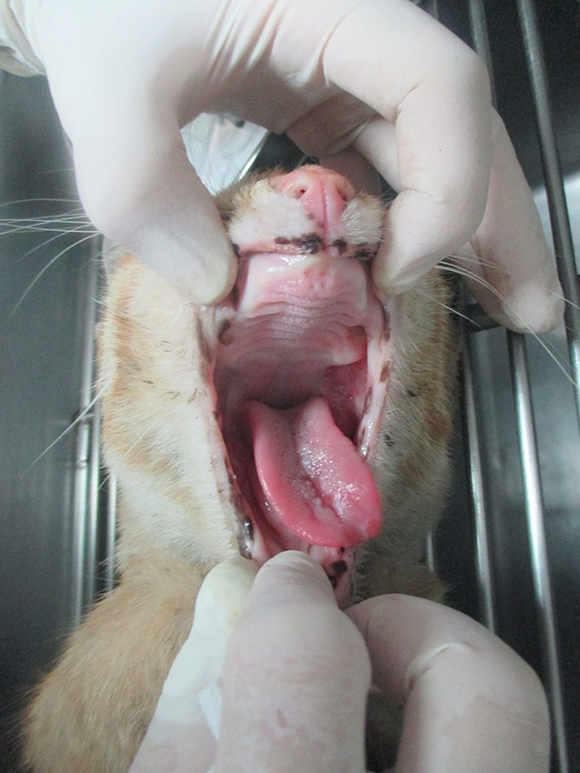 巧咪目前有脫水及鼻氣管炎的症狀,(鼻膿.口炎口腔潰瘍.)